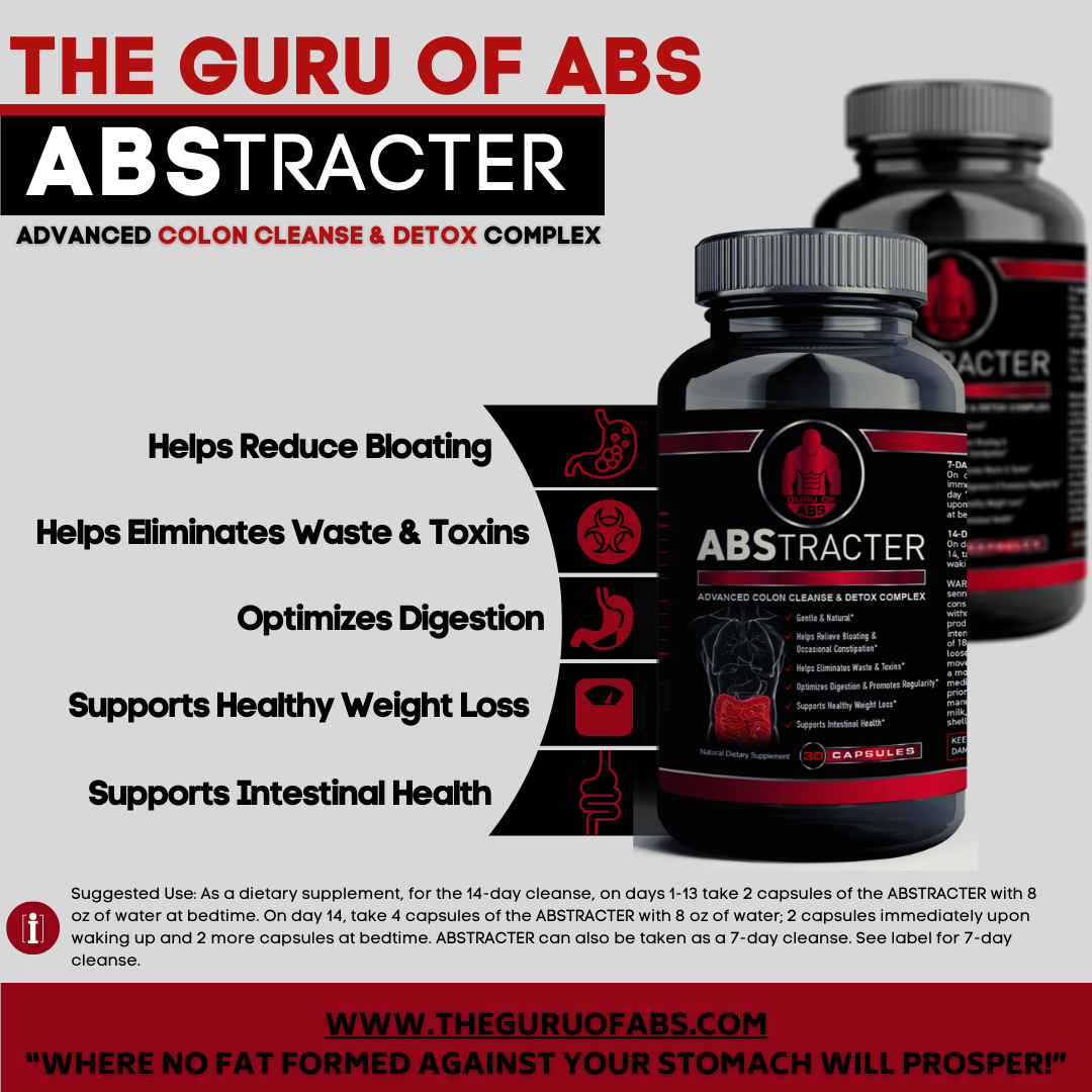 We all know that diet, exercise, and drinking plenty of water is essential to maintaining regularity and a healthy weight. Despite our best intentions, sometimes healthy diets get off-track, and a periodic colon cleanse enhanced with gut-healthy probiotics can help. When added to a healthy lifestyle, The Guru of Abs ABStracter is the ultimate colon cleanse & detox complex to help support your weight management goals, whether used as a complete 14 or 7-Day Colon Cleanse.Share